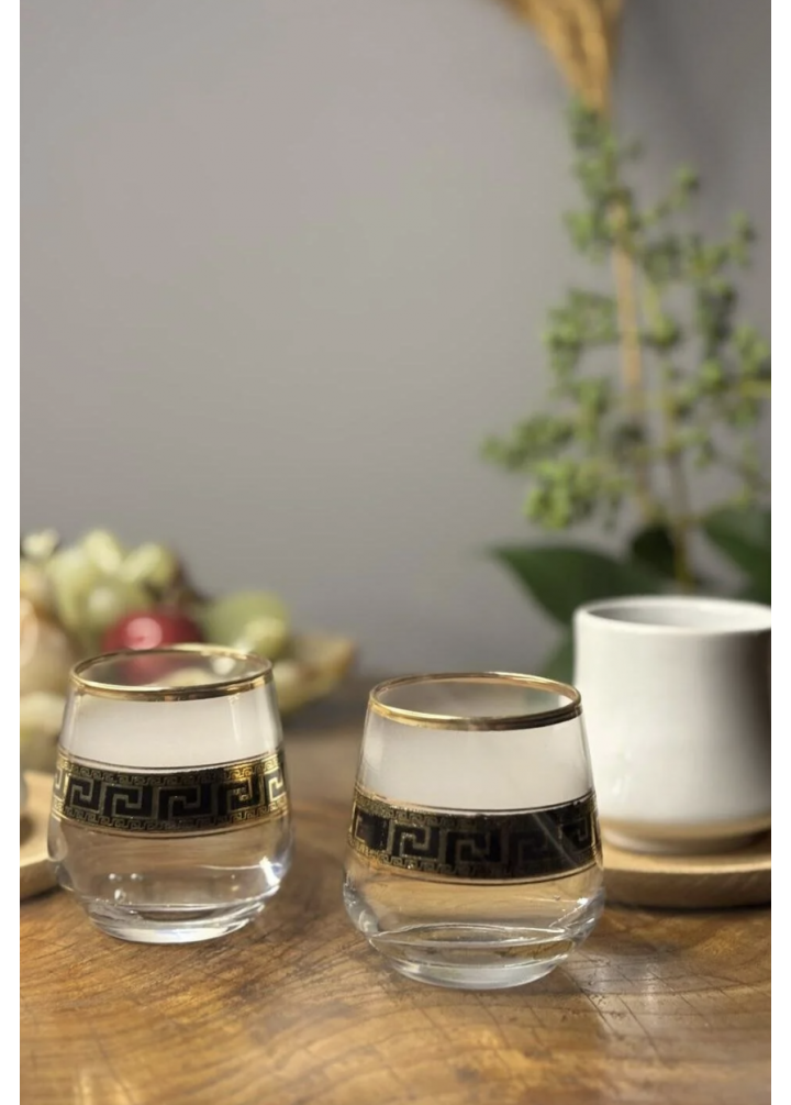 - Altın desenli cam bardak seti, şıklığı ve zarafetiyle sofralarınıza estetik bir dokunuş katıyor.