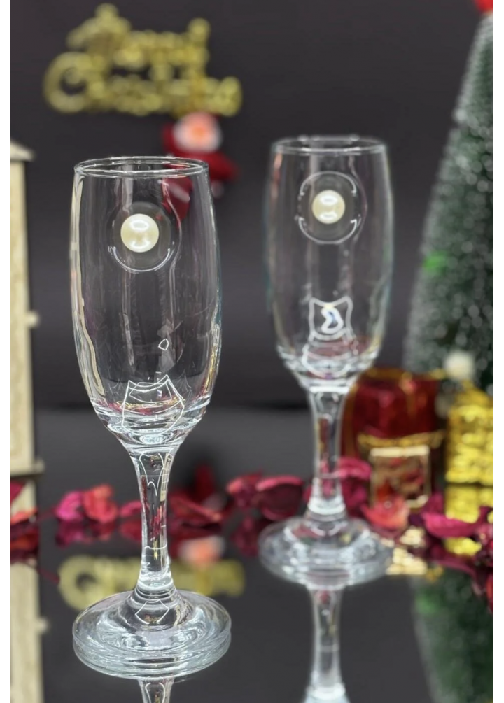 gıda temas Zarif inci detaylı tasarımıyla bu şampanya kadehi çifti, özel anlarınıza şıklık ve zarafet katıyor.