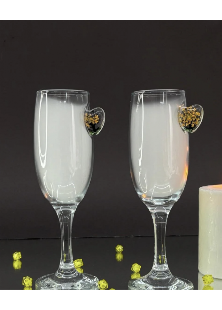 KirLiNova Kalp Detaylı Kokteyl Kadehi 2 li – Özel Gün Hediyelik
