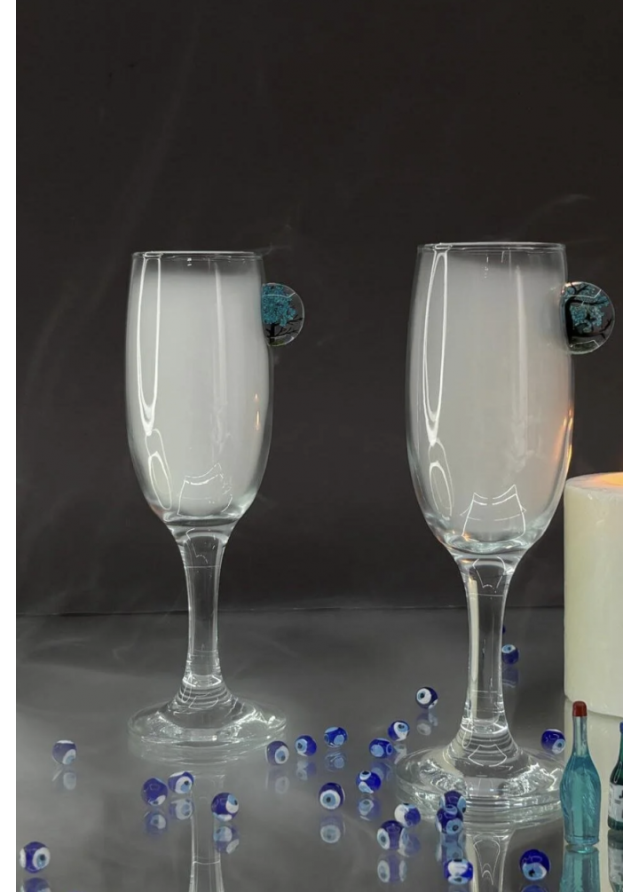 Zarif mavi çiçek figürüyle tasarlanmış bu şampanya kadehi çifti, özel anlarınıza şıklık ve anlam katıyor.