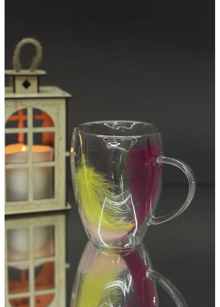 Zarif ve modern tasarımıyla dikkat çeken tüylü çift cidarlı kulplu cam bardak, hem estetik hem de fonksiyonel bir kullanım sunar.