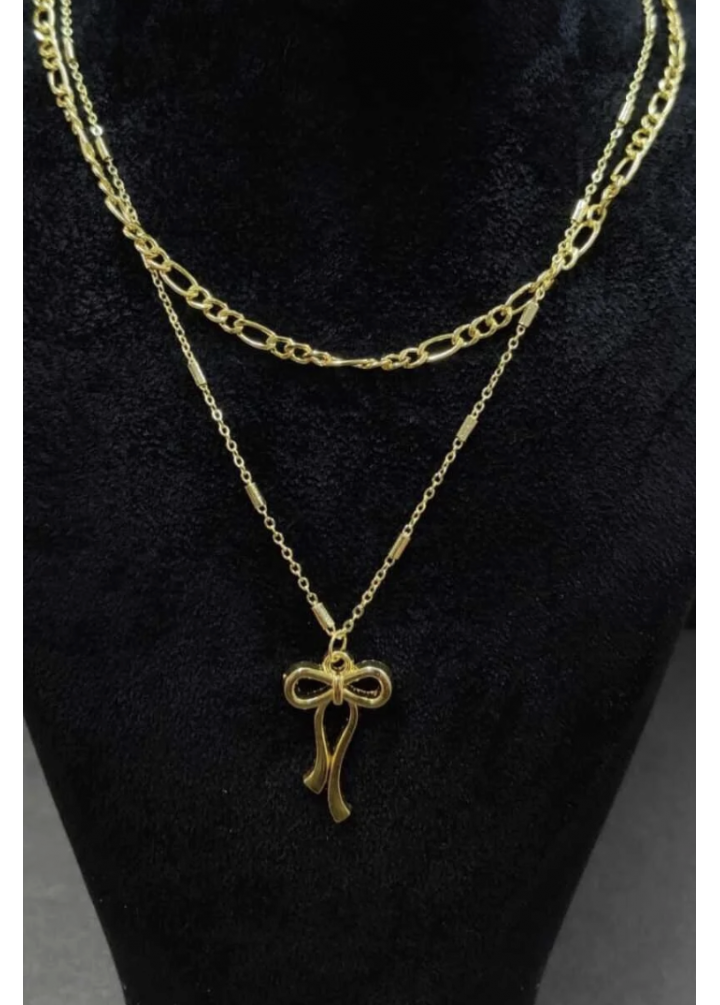 KirLiNova Çift Zincirli Fiyonk Figürlü Kadın Kolye