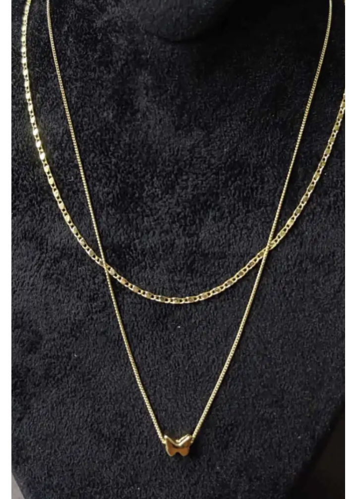 Zarif kelebek figürü ve iki farklı zincirin uyumuyla tasarlanan bu kolye, feminen ve şık bir görünüm sunar. Gold ton rengi sayesinde hem günlük hem de özel kombinlerde rahatlıkla kullanılabilir.
