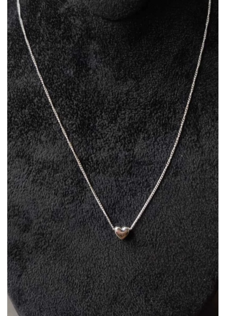 Zarif ve sade tasarımıyla öne çıkan bu minimal kolye, parlak yüzeyli kalp figürü sayesinde boyunda şık ve feminen bir duruş sunar.