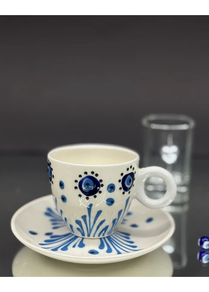 KirLiNova Nazar Gözlü Porselen 2’li Fincan Seti – El Dekorlu Kahve Fincanı Takımı