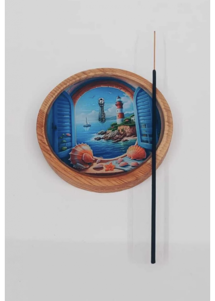 Deniz manzarası ve fener detayıyla süslenmiş bu özel tasarım ahşap tütsülük, hem evinizde dekoratif bir obje olarak hem de tütsü keyfinizi güvenli ve estetik bir şekilde yaşamanız için tasarlanmıştır.